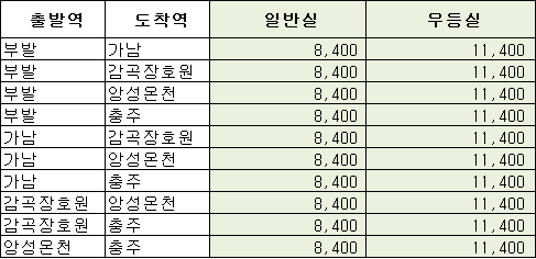 일반실 4좌석을 원티켓 세트로 구간에 관계없이 5만 원에 파니 장거리 구간에는 이득으로 보입니다.