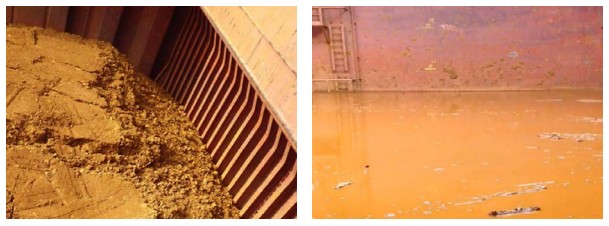 - 수분의 이행(Moisture migration) : 선박의 동요 및 진동에 의한 화물의 침하와 고정에 의하여 산적화물 입자간을 수분이 이동하는 것을 말하며, 수분은 점차 이동하여 화물의 어느 부분 또는 전체가 유동상태를 나타나게 됩니다.