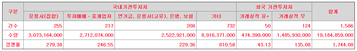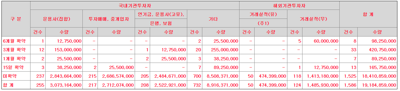 | 기관투자자 | 11,000,000 주 | 64.71 % | 18,700,000,000 원 |