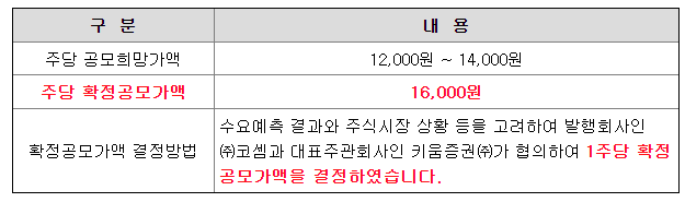 | 코셈 | 2/13~14 | 16,000원 | 키움증권 |