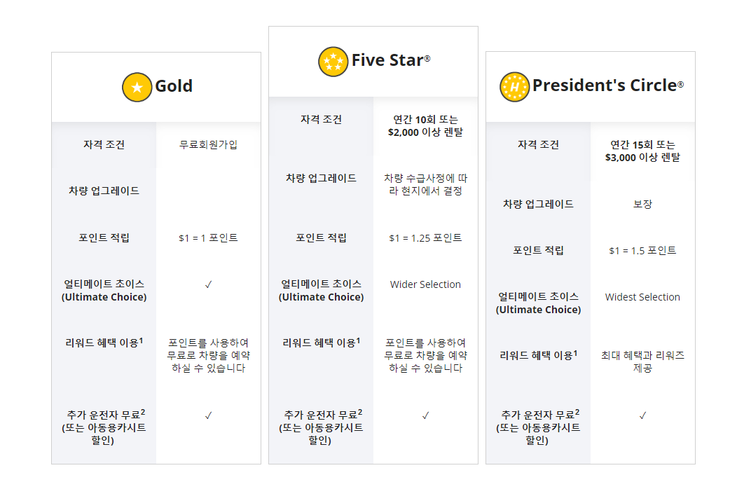 허츠렌터카의 지위는 다음의 3가지로 나뉘는데요.