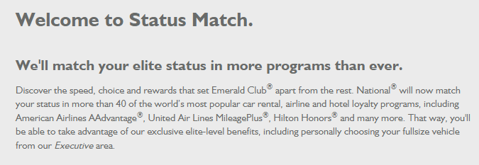 그래서 목록 중에 National 렌터카를 활용해서 Status Matching을 시도해 봅니다.