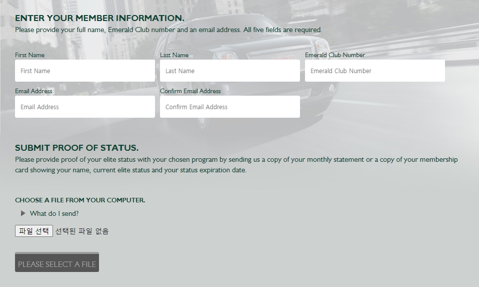 허츠의 Status Matching 프로그램에 들어가 보면, 항공사는 없고, 다른 렌터카 등급만 나와 있습니다.