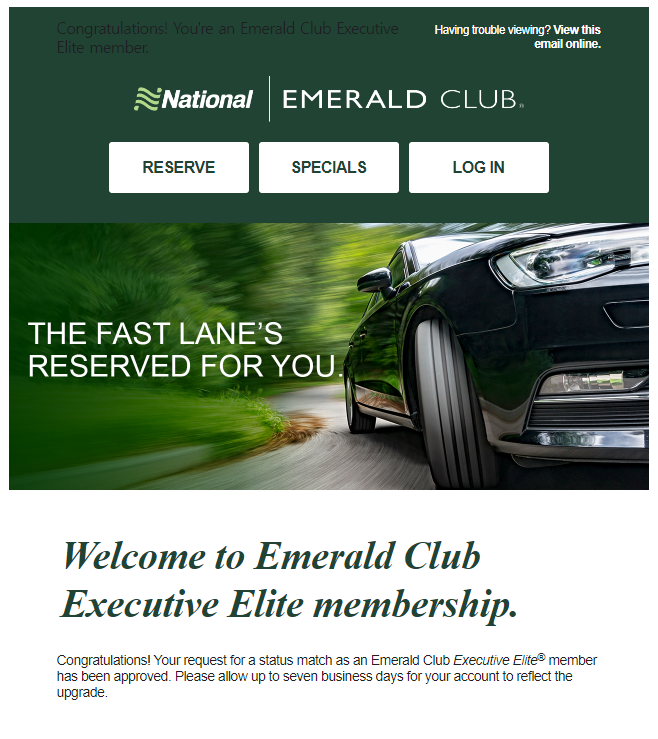 네 바로 최상위 등급인 Executive Elite가 되었습니다.